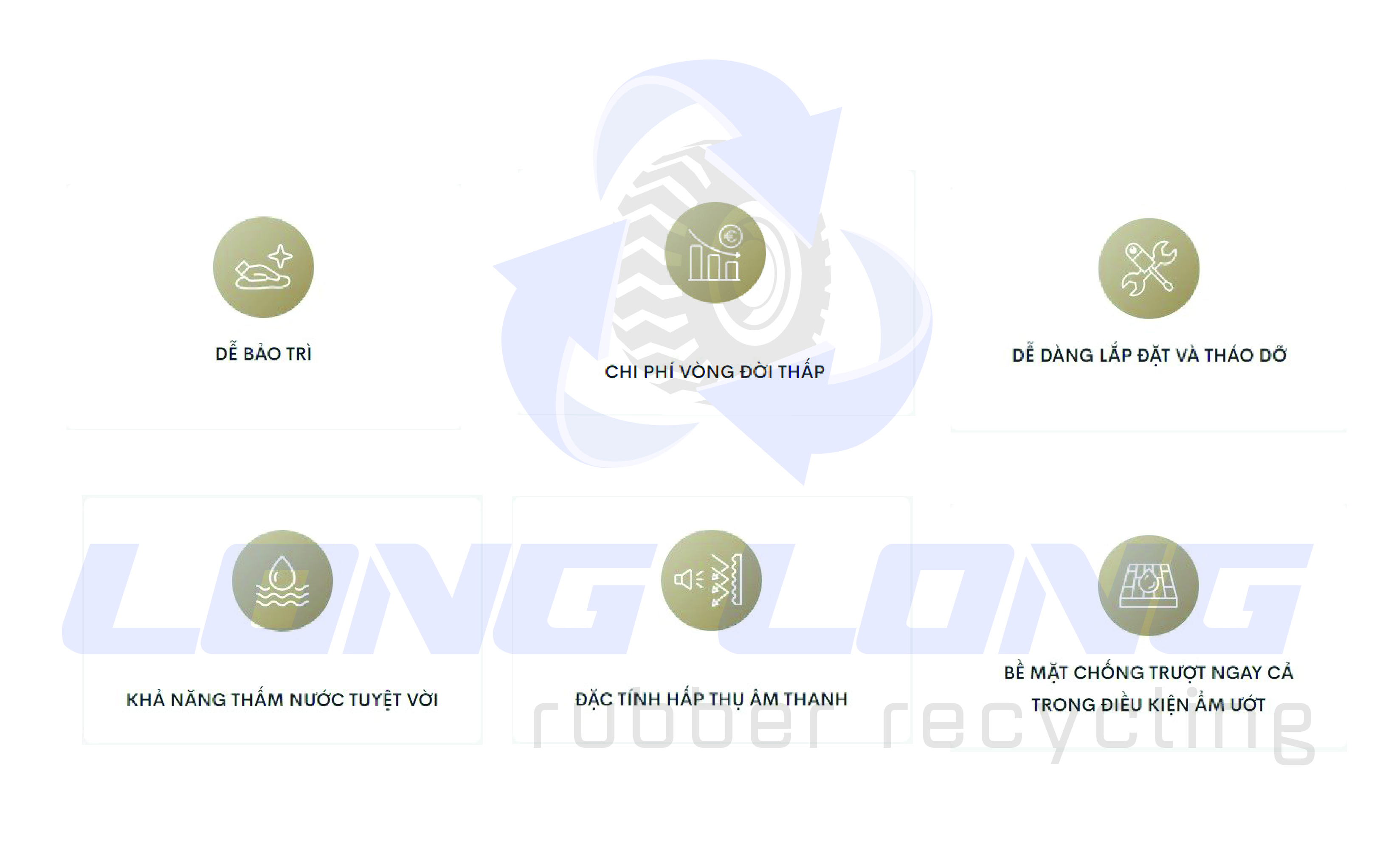 Hàng nghìn phòng tập tại Việt Nam và trên thế giới đã sử dụng gạch cao su phòng gym Long Long và nhận được sự hài lòng về chất lượng sản phẩm. Những đặc tính nổi bật như:
