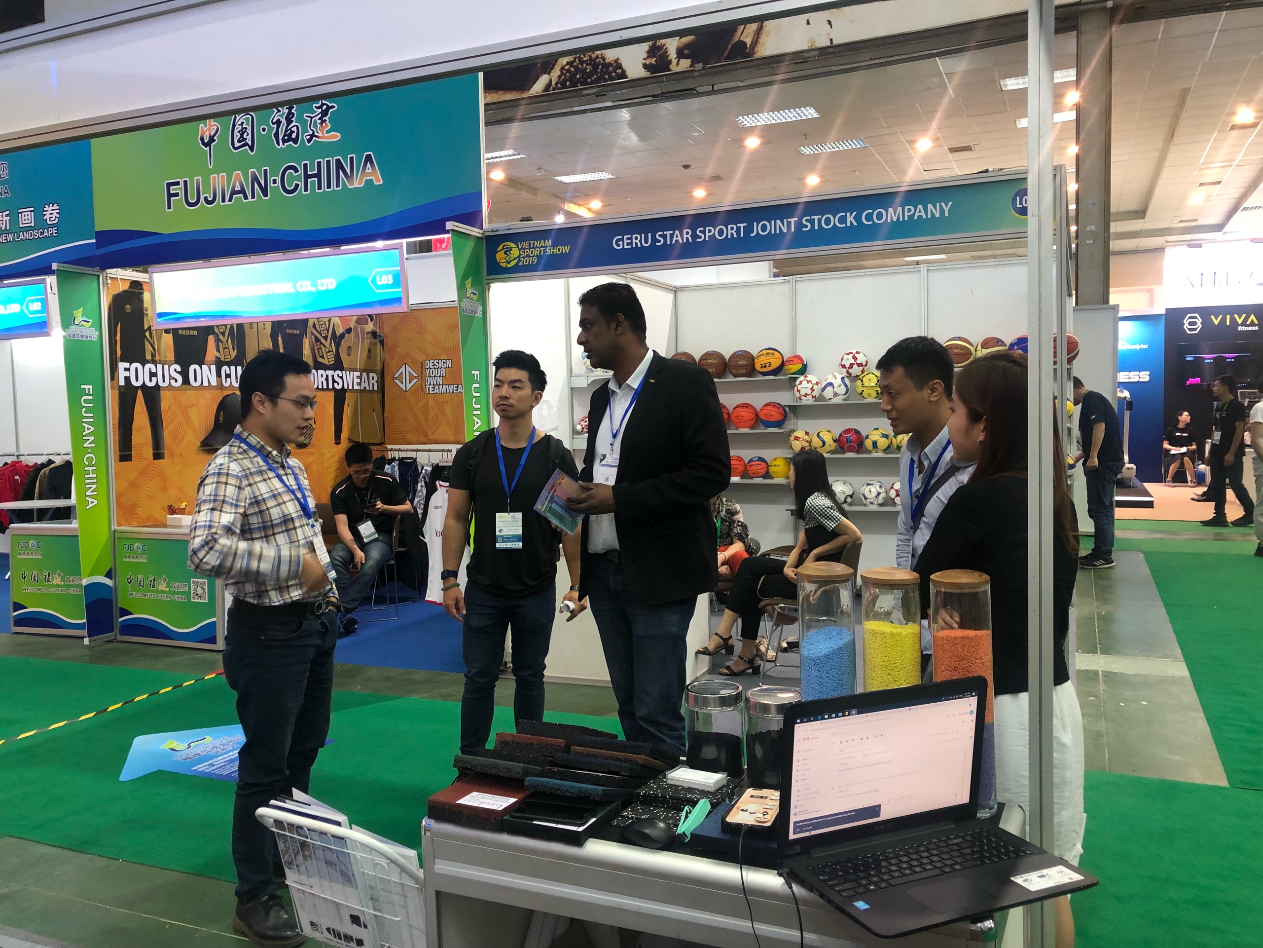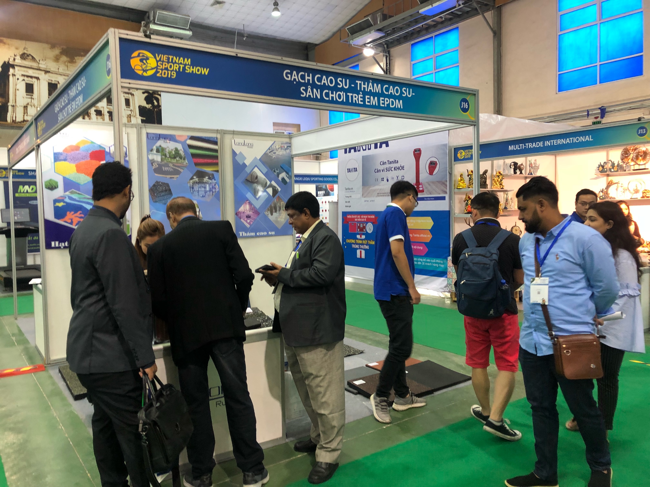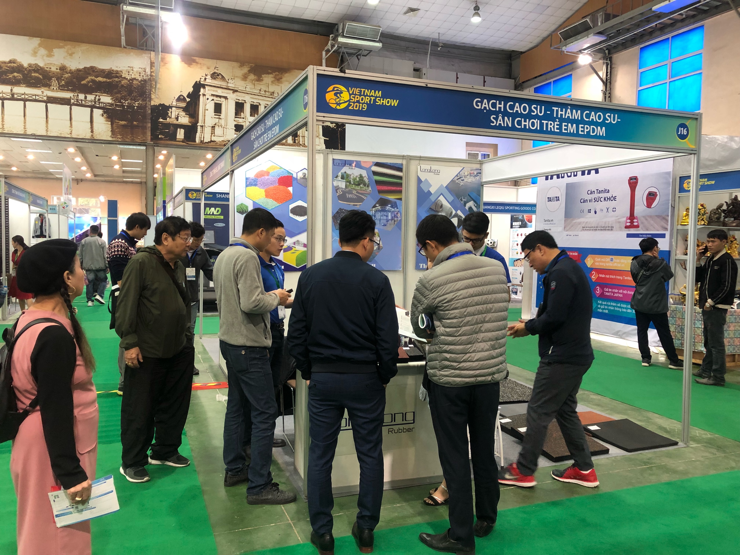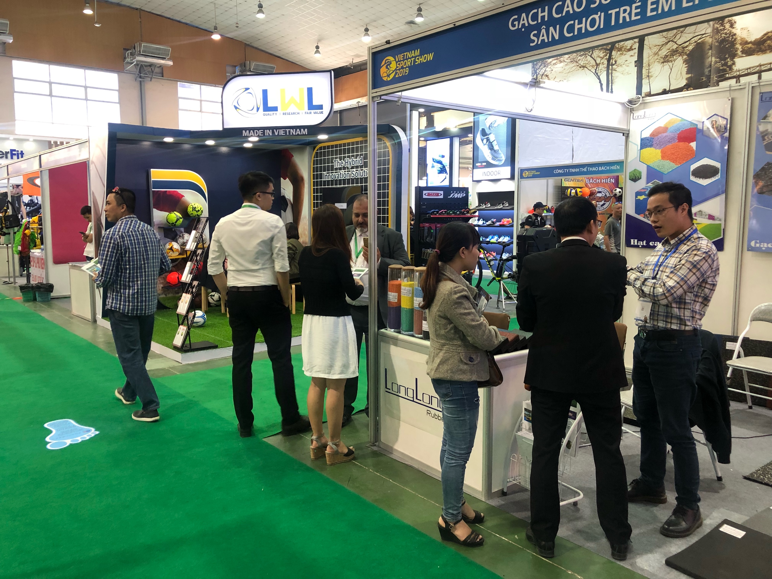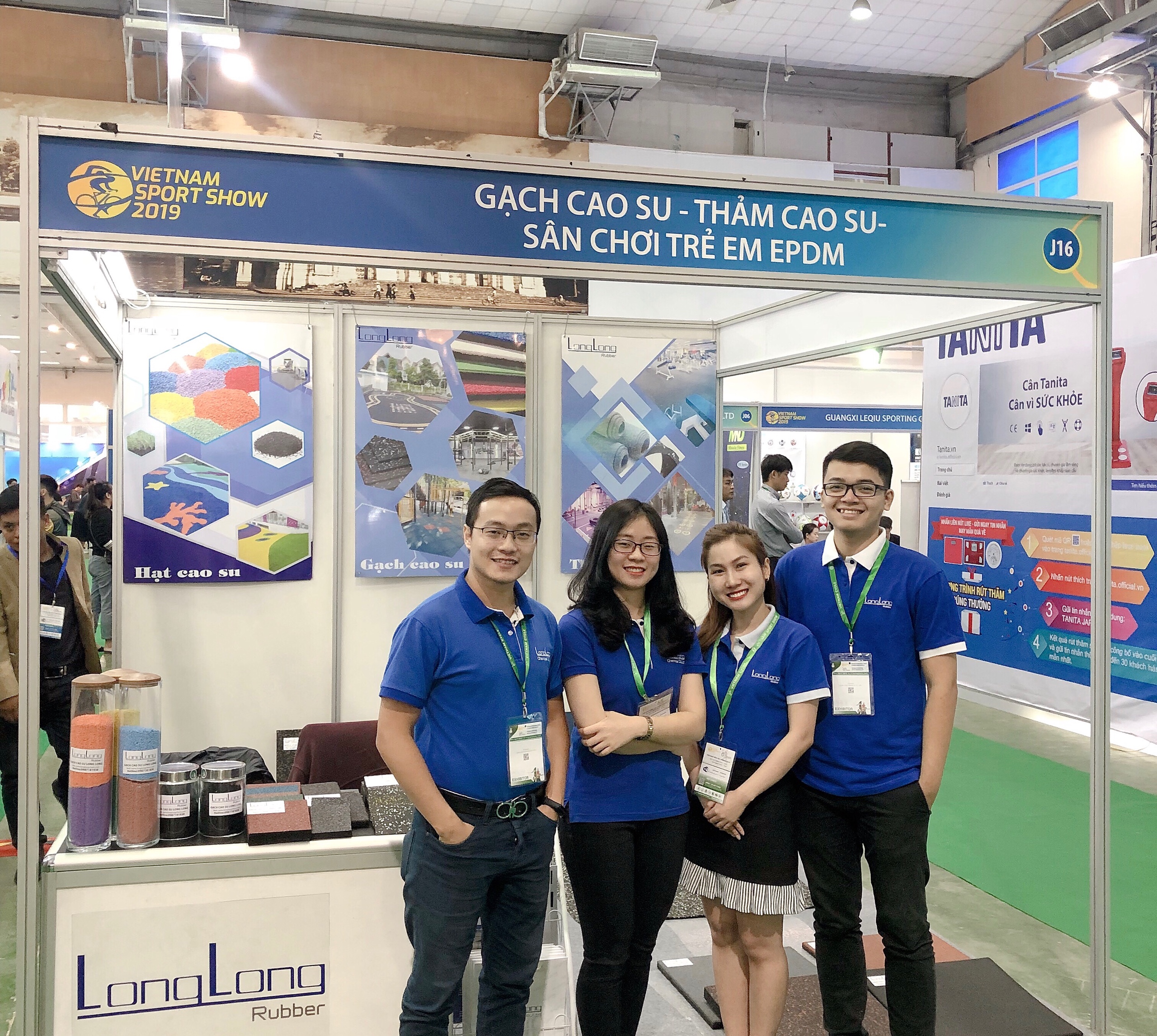 Với đặc trưng là các sản phẩm cao su tái chế như: gạch cao su, thảm cao su, hạt cao su và cao su tái sinh, Long Long đã đem đến triển lãm 1 giải pháp về sàn hoàn toàn độc đáo và thân thiện với môi trường. Những tính năng đặc biệt của sàn cao su như: chịu lực tốt, chống trơn trượt, giảm tiếng ồn, giảm chấn thương khi va chạm, bảo vệ sàn,... Đây thực sự là lựa chọn phù hợp cho các khu vực luyện tập thể dục thế thao.